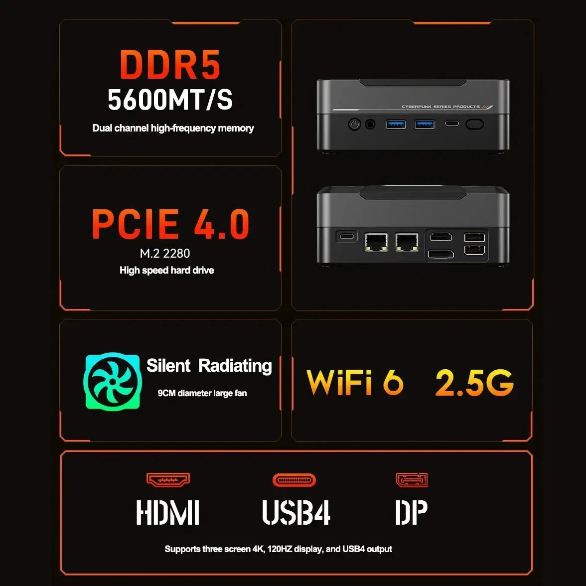 Super Deal Mini PC AMD R7 8845HS R7 7840HS Window11 Pro 64GB DDR5 1TB PCIe4.0 1 X Thunderbolt3(40Gbps)