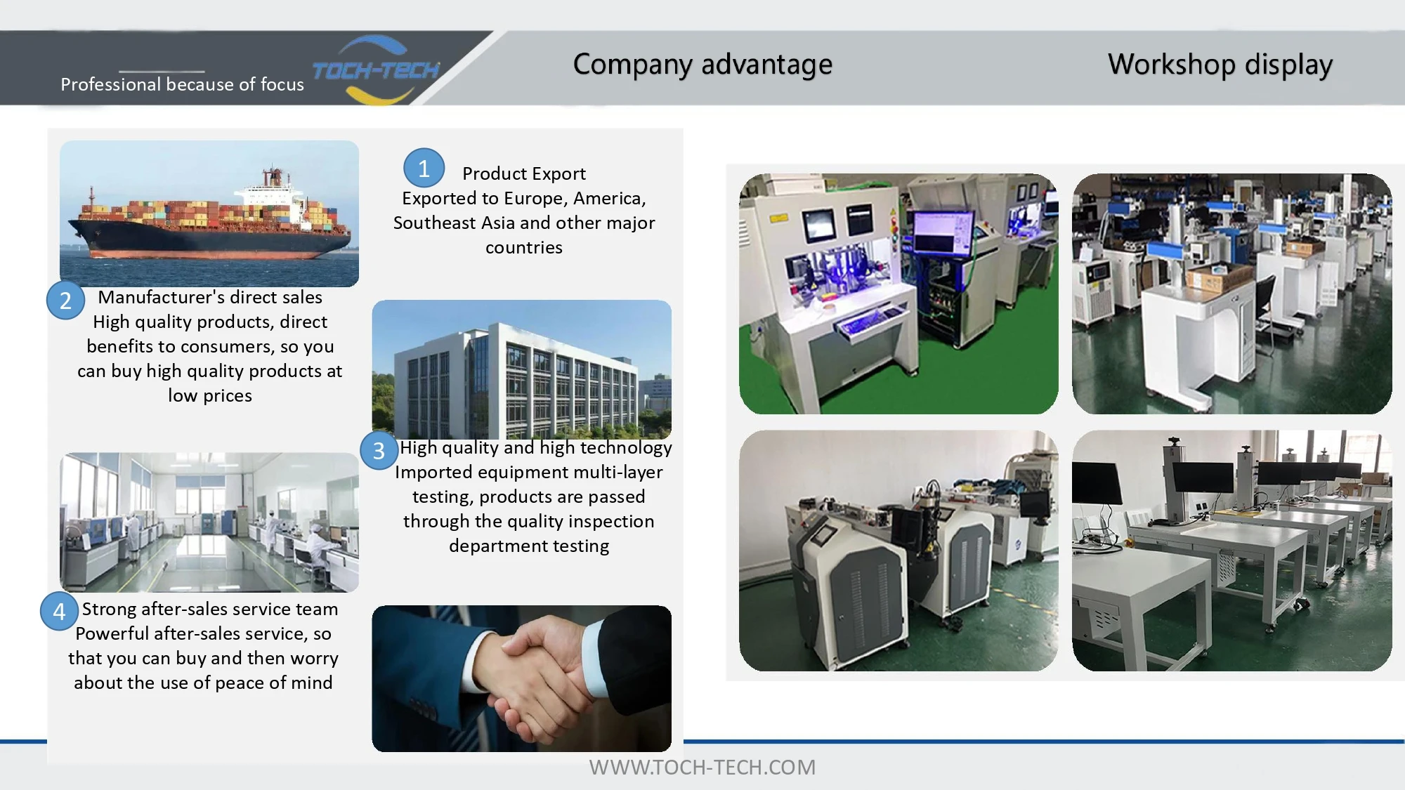 Hubei Toch Technology CO.,Ltd is a professional manufacturer of industrial laser equipment, located in China "Optics Valley"-Wuhan City. Since 1995, Toch Technology focused on the development and production of various types of laser machinery. Our products include: laser cutting machine, laser marking machine, laser welding machine, laser cutting machine,laser cleaning machine and so on. More than 20 series, 300 types. and we can supply OEM & ODM service . Toch Technology has been exported to more than 120 countries and regions in the world, including: Germany, Japan, Italy, Russia, Japan, South Korea, Turkey, Brazil , India, the United Arab Emirates,and so on.