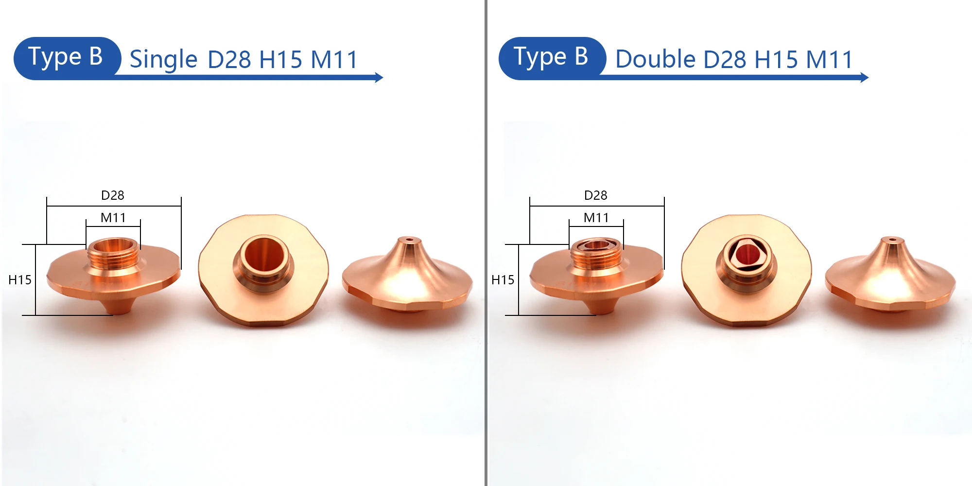 Single-layer nozzles are usually used for cutting aluminum plate,copper plate with nitrogen air as auxiliary gas;