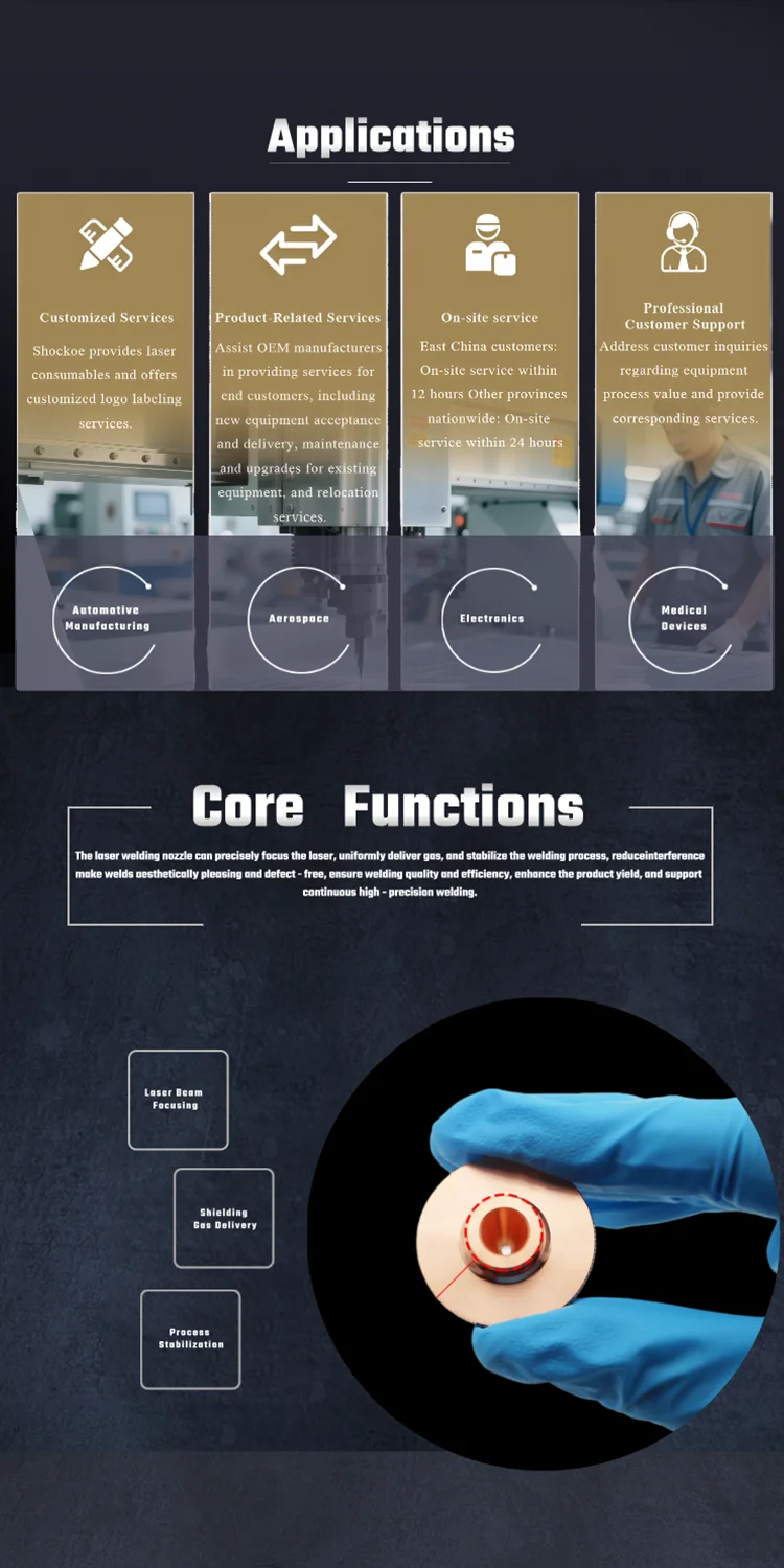Other laser equipment accessories includE:laserhead,protective lens, nozzle, collimating focusing lens,sensor,ceramic body, radio frequency cable and so on.