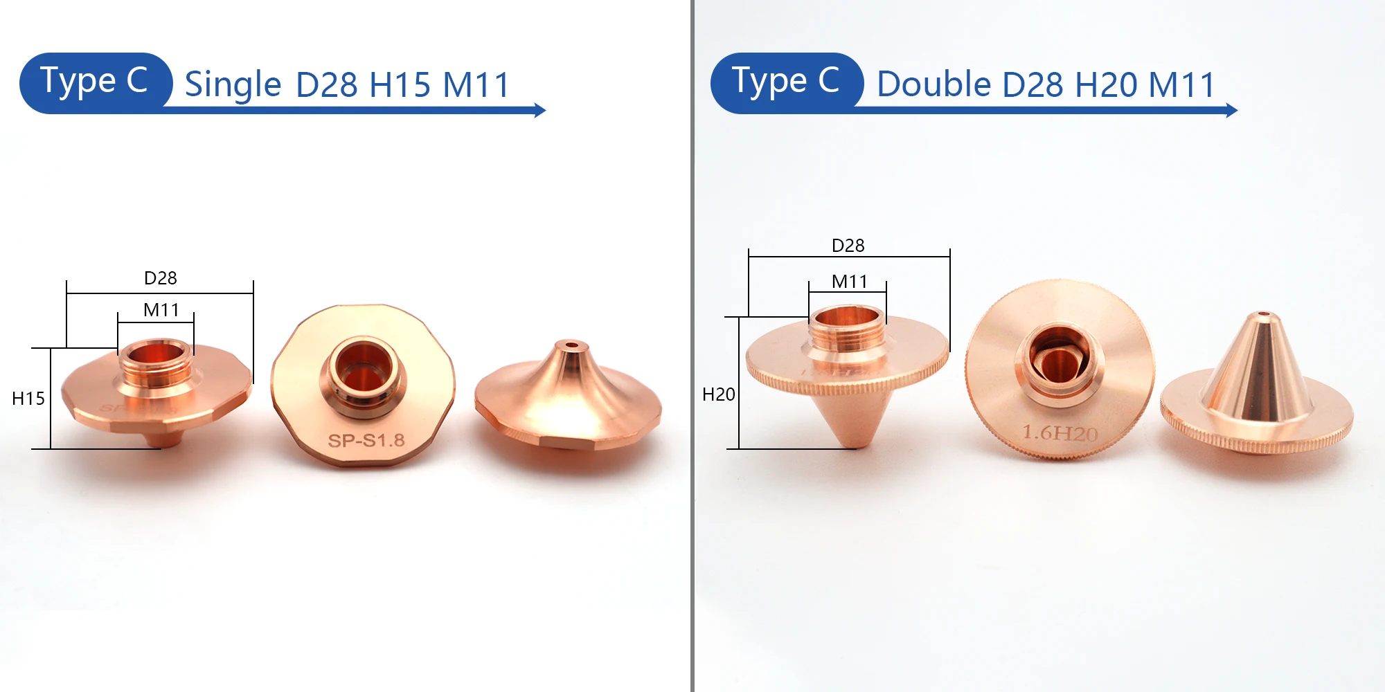 Double-layer nozzles are usually used for oxidative cutting, cutting carbon steel with oxygen as auxiliary gas.