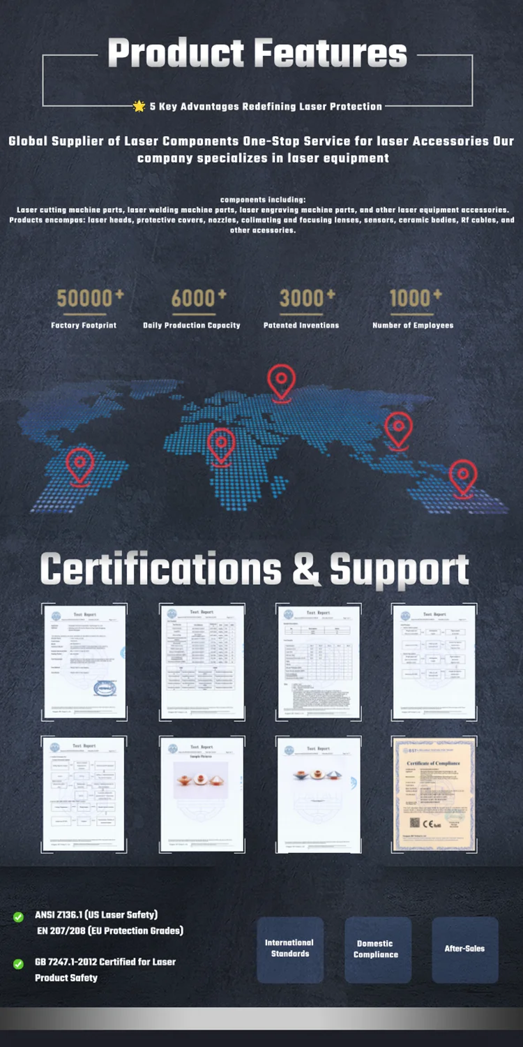 We are a manufacturing enterprise integrating production,research and development and sales. Our company has a group of engineering and technical personnel who have been engaged in demand analysis in the laser field , with complete equipment and strong technical strength, and can provide customers with high-quality products. Our company mainly deals in:laser cutting machine accessories, laser welding machine accessories laser engraving machine accessories
